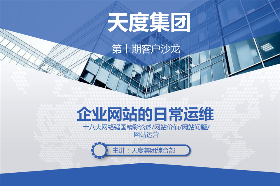 企業(yè)網(wǎng)站建設(shè)是企業(yè)文化的組成部分,對(duì)企業(yè)形象的建立和企業(yè)知名度的提高起著至關(guān)重要的作用,是企業(yè)實(shí)現(xiàn)”互聯(lián)網(wǎng)+“產(chǎn)業(yè)轉(zhuǎn)型的重要手段。建一個(gè)網(wǎng)站,對(duì)于大多數(shù)人并不陌生。尤其是已經(jīng)擁有自己網(wǎng)站的企業(yè)和機(jī)構(gòu)。但是提到網(wǎng)站運(yùn)營(yíng)可能特別多人不理解,對(duì)網(wǎng)站運(yùn)營(yíng)的重要性也不明確,通常被忽視。故此天度集團(tuán)專(zhuān)門(mén)針對(duì)“企業(yè)站的日常運(yùn)維”展開(kāi)了第十期客戶(hù)沙龍。