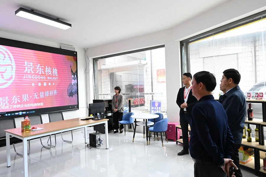 景東縣委書記李春榮,縣委副書記、縣政府縣長胡其武,副縣長吳瓊瑤等領(lǐng)導(dǎo)陪同調(diào)研,景東蔚嵐電子商務(wù)有限公司總經(jīng)理彭金明向各位領(lǐng)導(dǎo)介紹了項(xiàng)目運(yùn)營情況。